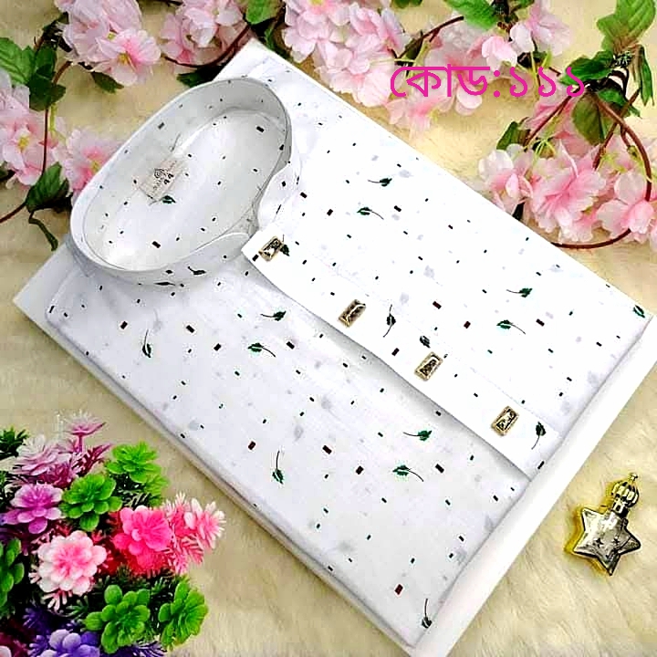 111 - সাদা সুতি পাঞ্জাবি(সবুজ মরিচ পাতা)